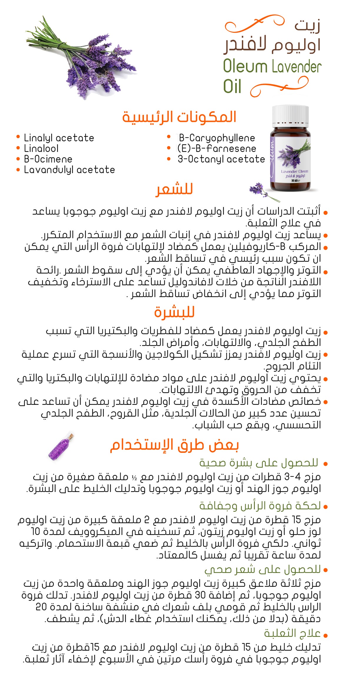 تشمل الميزات الفريدة لزيت Oleum Lavender ما يلي: